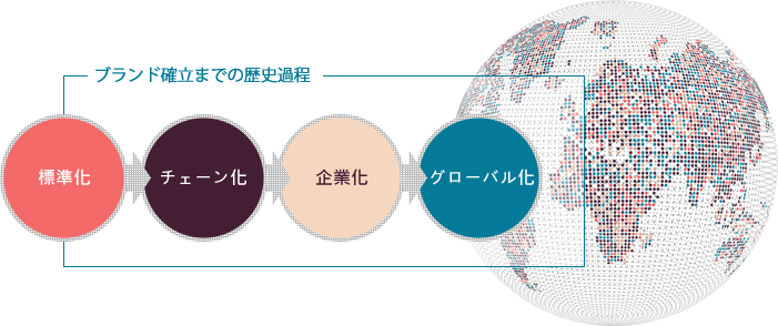 40 年あまりが経ち、街中の小さなお店が、グループ化経営へと発展し、「標準化」、「チェーン化」、「企業化」、「グローバル化」の4 段階を経験しました。あらゆる段階には、突破すべき異なる挑戦があり、とりわけ第一段階における「標準化」の確立がきわめて重要でした。油の品質、油の温度、鍋、鶏肉の品質管理等に対する厳しい要求、さらには絶え間ない試験、開発を繰り返すことによって、良質な商品を生み出すことができました。